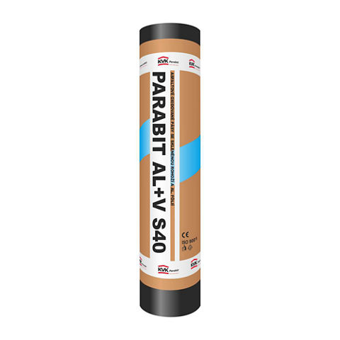 Asfaltový pás s nosnou vložkou z Al fólie, kašírované skelnou rohoží, na horním povrchu krytý jemnozrnným posypem a na spodním je opatřen spalitelnou fólií
