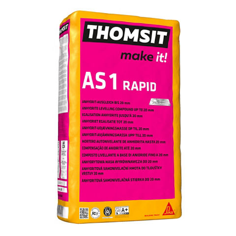 Kalciumsulfátová samonivelační stěrka bez pnutí pro vytváření podkladů před aplikací všech měkkých podlahových krytin, parket a laminátů. THOMSIT AS 1 RAPID lze použít na vhodné: