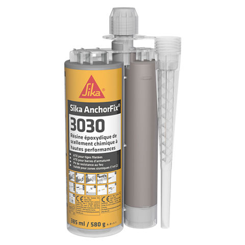 Sika AnchorFix®-3030 je 2-komponentní, tixotropní, vysoce výkonné kotvicí lepidlo na bázi epoxidové pryskyřice pro kotvení závitových tyčí a armovacích prutů do suchého i vlhkého betonu s trhlinami i bez trhlin.