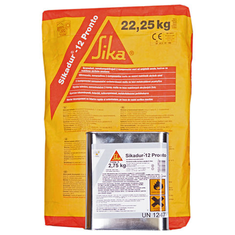 Sikadur®-12 Pronto je 2-komponentní, rychle vytvrzující, mnohostranně použitelná, ručně nanášená opravná malta a zálivka. Vhodná pro všechny typy oprav betonových prvků, zejména při nízkých teplotách. Má vynikající mechanickou pevnost a odolnost proti otěru, nárazu a chemikálií. Tloušťka vrsty při použití jako zálivka je 5-30 mm. Při použití jako opravná malta plněná písek, je tloušťka vrstvy 20-100 mm. Aplikační teplota -10°C až + 30°C.