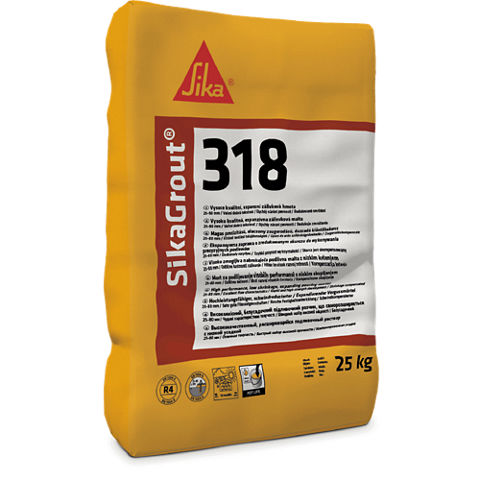 SikaGrout®-318 je 1komponentní, zálivková hmota na bázi cementu, připravená ihned k použití, vysoce tekutá s expanzními účinky a omezeným smrštěním.